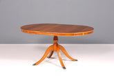 Dieser exquisite englische Esstisch verkörpert die zeitlose Eleganz der Regency-Ära mit authentischem Charakter. Das edle Eibeholz besticht durch seine warme Maserung und natürliche Patina, während der ausziehbare Mechanismus flexible Platzlösungen für Alltag und Festtafel bietet. Die klassischen Proportionen und handwerkliche Verarbeitung machen diesen Vintage-Klassiker zum Statement-Piece für anspruchsvolle Interieurs. Ein Stück britischer Designgeschichte, das Ihre Esskultur bereichert und Generationen überdauert.