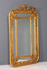 Aussergewöhnlicher Standspiegel im Barock-Stil: Massives Holz, Facettenschliffglas & eindrucksvolle Verzierungen