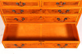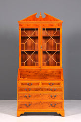 This elegant English secretary desk combines classic design with functional sophistication. The piece boasts high-quality yew wood craftsmanship in an authentic antique style and offers a generous work surface with a genuine leather overlay for comfortable writing and working. The integrated hutch with glass-fronted cabinet provides additional storage space for your most treasured collections and documents – perfect for a sophisticated study or living room. A timeless piece of British craftsmanship that adds character and prestige to your space.